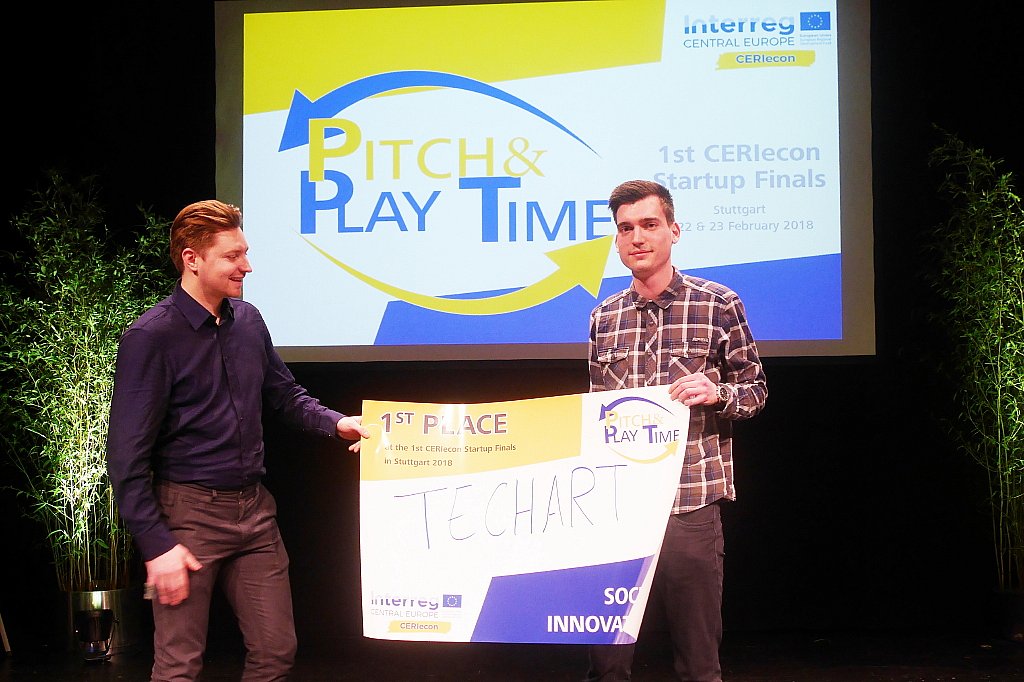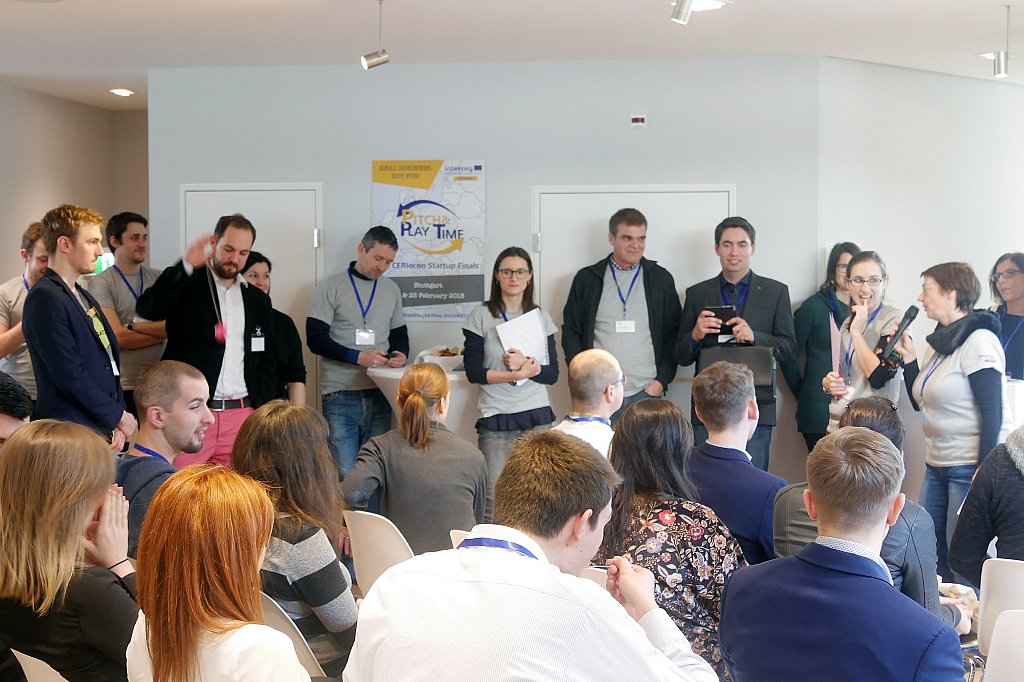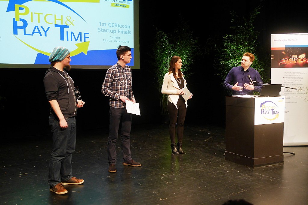 16 startups participated in the “Pitch & Play Time” competition. They consisted of the best teams of seven European regions and underwent a 6-month long training in specific co-working spaces, the so-called Playparks. Those Playparks are situated in Bratislava (Slowakia), Brno (Czech Republic), Krakow (Poland), Rijeka (Croatia), Verona (Italy) Vienna (Austria) and Stuttgart (Germany). They were created as part of the EU-project CERIecon (Central Europe Regional Innovation Ecosystems Network), in which the Stuttgart Media University’s Startup Center (Generator) and the office for economic development of the Stuttgart region (WRS) are taking part.